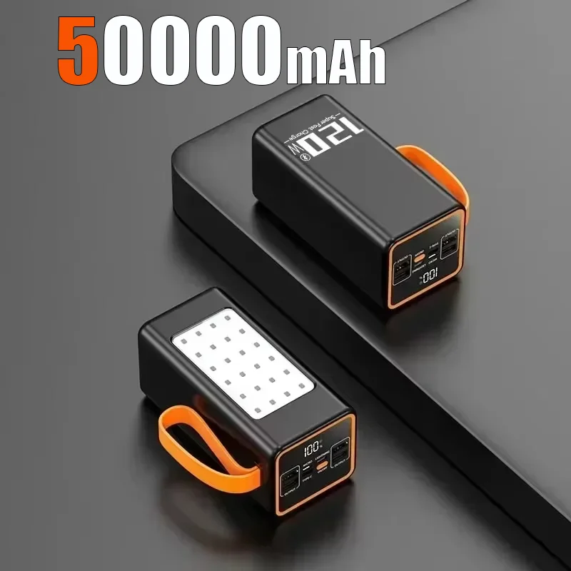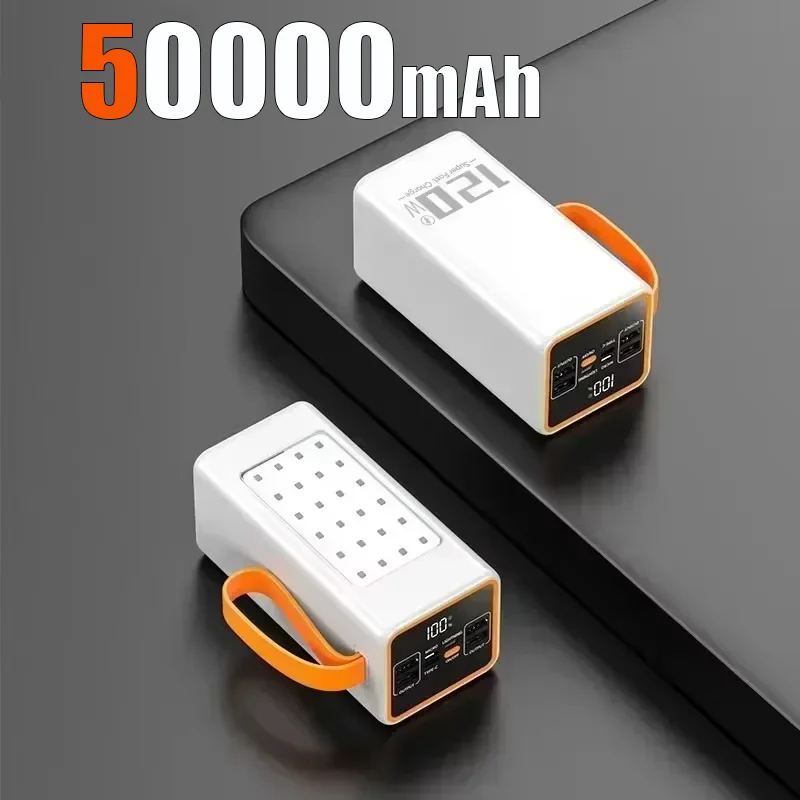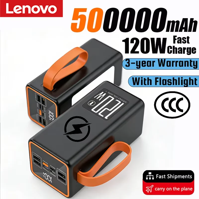 Lenovo 500000mAh Grande capacité PowerBank 120W Batterie de rechange externe à charge rapide avec lumière LED pour iPhone Xiaomi Samsung Nouveau